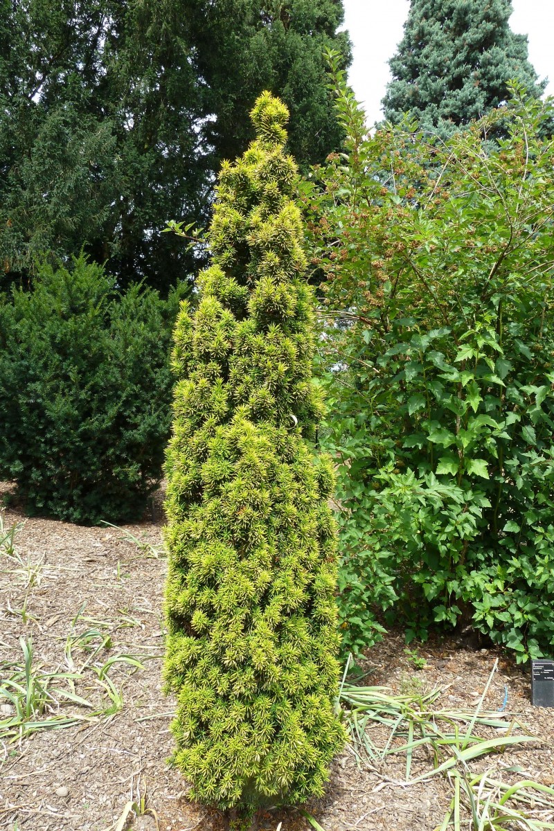 Zimzeleni iglavec kompaktne razrasti z zlato rumenimi iglicami. V višino doseže od 50 do 70 cm, v širino do 1m. Raste je počasna. Zelo dobro se kombinira z ostalimi iglavci, primeren za skalnjake, strešni vrt, gredice, škarpe.